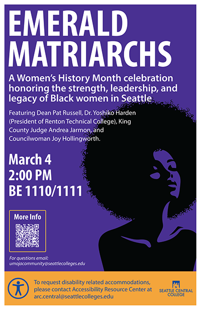 Join us for a powerful Women’s History Month celebration honoring the strength, leadership, and legacy of Black women in Seattle, past, present, and future. Celebrate leadership, resilience, and community at Seattle Central College, March 4, 2026, 2:00 PM in room BE 1110/1111.
